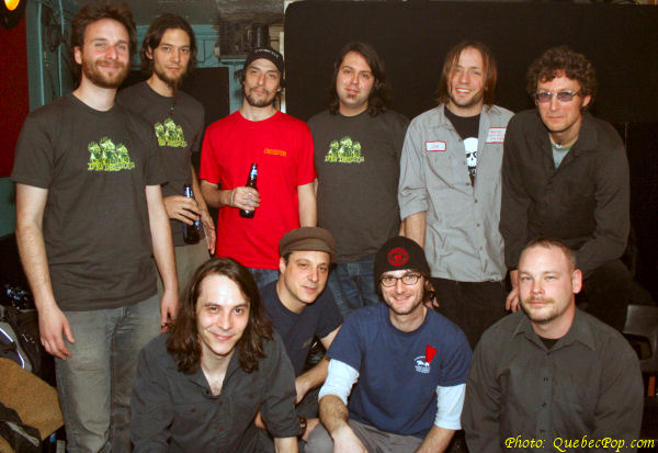 | Reportage - Soirée 1-2-3 Rock Au Cabaret Music Hall Jeudi le 14 avril 2005 ![]() Une photo de famille des trois groupes avant de subir les feux de la rampe |