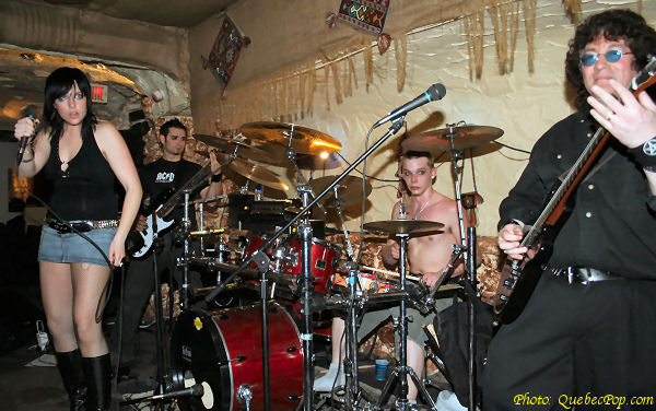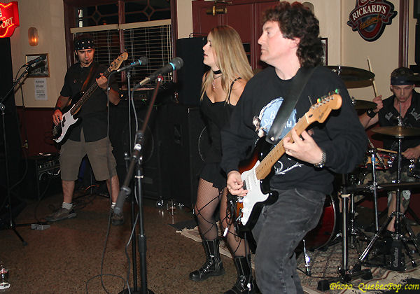 | C'est donc le groupe Arapacis qui terminait la soirée après le passage remarqué de la fort talentueuse (et jolie) Miranie. Le groupe est formé de la non moins jolie Elaine Huot (voix principale, piano), de Jerry Fielden (guitare, voix, synthés, mandoline), de Ray Tessier (batterie) et finalement de Gabriel Boudreault (basse, voix). Attiré sur place par la promesse d'un son rock hard progressif prenant sa source dans les années 70 mais avec une teinte bien 2000, je n'ai pas été déçu. Jerry est un vétéran de plusieurs années dans le métier, amateur de King Crimson tout autant que de Deep Purple, il a joué avec plusieurs bands de la région au fil des années et s'est forgé une technique de guitare à l'avenant. Le bassiste (Gab) et le batteur (Ray) de donnent pas non plus leur place et assurent une section rythmique particulièrement solide. La chanteuse (Elaine) s'est jointe au groupe il y a seulement deux semaines et bien qu'elle soit encore en train d'apprendre le matériel du groupe, on a l'impression que cela fait beaucoup plus longtemps. Une belle voix pour une fort charmante demoiselle qui me rappelle les chanteuses de groupes rock progressif comme Annie Haslam (Renaissance) et Sonja Kristina (Curved Air). Le matériel d'Arapacis est plus lourd et moins progressif que le matériel des groupes mentionnés mais la voix d'Elaine plane au dessus de la musique comme celle de ses aînées. Parmi les pièces interprétées par le groupe (merci Jerry pour la liste), il y a eu: Tale Spin, Time's Has-Been, Drop of Hope, Thunder Lizard (avec un solo de batterie bien salé), Reflections, By the Light of Old Stonehenge (cette fois avec un solo de guitare), Lessons of the Past, Histories, Roadways et So Many Leapers. En rappel, le groupe s'est lancé dans Who Knows, une reprise de Jimi Hendrix. Pour rester dans le mood Hendrix, le Québec a compté un groupe qui faisait beaucoup dans le même style , Mahogany Rush. J'ai appris que l'ex batteur du groupe, Jim Ayoub, était sur place hier et qu'il a trouvé le set d'Arapacis "plutôt hot", un beau compliment pour Jerry et sa bande. Tous les groupes de ce soir ont du bon matériel à proposer aux amateurs de rock, j'ai passé un excellent moment en leur compagnie et je me promets bien de les revoir sur scène très bientôt ! |