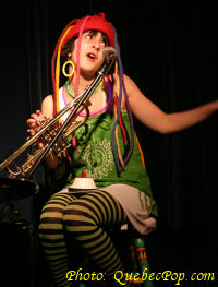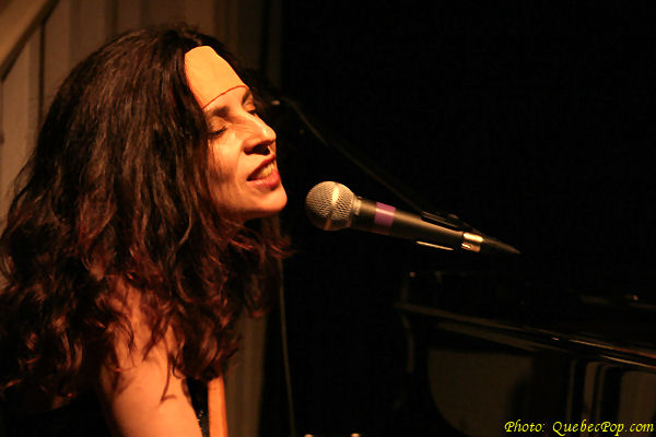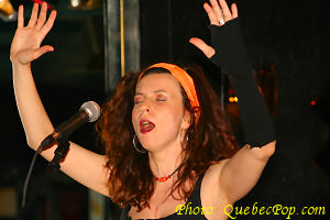 Histoire de réchauffer la salle en attendant Anne-Marie Gélinas, Véronique Bacci nous a interprété quelques chansons de son répertoire, incluant des poèmes de Maurice de Longue Épée qu'elle a mis en musique.D'entrée en matières, elle nous présente Petit bonhomme vert avec l'aide de sa fille Morgane à la trompette. Cette dernière se met joliment dans la peau d'un extra-terrestre qui arrive sur terre, afin de découvrir de quoi il en retourne sur la planète bleue. En trois chansons, Véronique tentera d'expliquer à son interlocuteur les bons et les moins bons côtés de l'être humain. Condenser de telle façon toute l'âme humaine n'est pas chose facile et Véronique doit puiser au fond de ses ressources émotives pour y arriver. Pour connaître la suite et en savoir plus sur son matériel, elle vous invite à un spectacle complet le 19 avril prochain au Balattou, 4374 Boul. St-Laurent à Montréal, le tout commence à 21h30. |