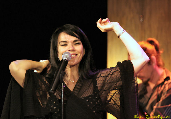 Elle nous apparaît telle une tragédienne grecque, vêtue de noir, le geste ample, réfléchi, la robe vaporeuse: on sait tout de suite que l'invitation sera d'entrer dans son univers, celui des mots qu'elle fait siens. Elle chante les auteurs francophones, Danielle Messia (De la main gauche), Gilbert Gélinas (Intermède), Roger Tabra, Léo Ferré (Avec le temps), Dan Bigras, Daniel Lavoie, et Landriault dont elle reprend au minimum