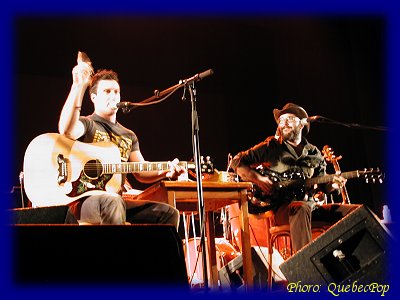 Première partieELOI ET JONATHAN PAINCHAUD En première partie de Robert Charlebois ce soir, j'ai eu droit à une courte prestation des frères Painchaud. Ex-Okoumé, ils ont un album en duo à leur actif et ils nous ont fait une demi-douzaine de chansons extraites de cet album. J'ai pû reconnaître leur succès "Parle parle" mais les autres chansons m'étaient inconnues incluant celle de Hank Williams qui a clôturé le spectacle. Ils étaient accompagnés de Jean-Guy Grenier à la "steel guitar" ainsi qu'au banjo. Pour en savoir plus sur les frères Painchaud... |