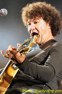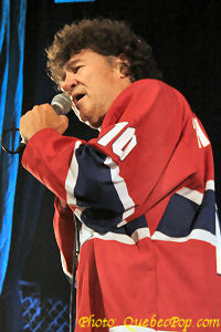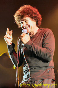 Deuxième partieROBERT CHARLEBOIS Très en forme, Robert nous a offert un bouquet de ses plus grands succès... "Miss Pepsi", "Dolores", "Les ailes d'un ange", "Fu Man Chu", "Ordinaire", "Je reviendrai à Montréal", "Entre deux joints", "Lindberg", et j'en passe... Il en a aussi fait quelques-unes de son dernier album primé à l'ADISQ, comme "Les Américains", "Les ondes", "La démone", etc. En fait, le mélange était parfait, nous permettant de découvrir ses chansons plus récentes à travers un pot-pourri de tubes qui ont marqué notre jeunesse. Il était accompagné de musiciens de calibre, incluant Dominique Lanoie (Bündock Lanoie) aux guitares, Frédéric Beauséjour à la basse, Martin Lapalme à la guitare acoustique, Catherine Ledoux (Frères à ch'val, Saoroma) au violon et aux percussions et finalement Justin Allard à la batterie. Lui-même (charlebois) a joué de la guitare (électrique et acoustique) et du piano. Une belle soirée ponctuée de 3 rappels et d'une foule qui en redemandait encore. Du grand Charlebois ! |