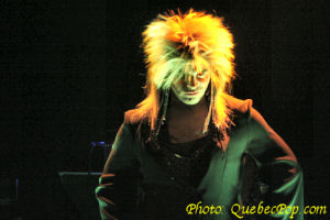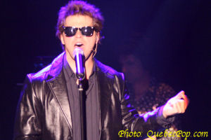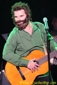 On sait qu'il n'a pas son pareil pour imiter les voix des chanteurs (Richard Desjardins, Claude Dubois, Michel Louvain) et des chanteuses (Ginette Reno, Tina Turner, Cher, etc), on apprend même qu'il a une formation de chant classique, ce qui explique cette voix forte et cette prestance quand il fait Pavarotti ou Quilicot, mais en plus on est impressionné par son sens du timing, le nombre de changements de costume ou comment il peut s'approcher de la démarche et du look d'un artiste connu en ajoutant simplement une paire de lunettes ou un chapeau. Sans avoir fait un décompte exact, j'imagine qu'il a fait pas loin d'une centaine d'imitations: comédiens, politiciens, chanteurs, chanteuses, humoristes, un véritable feu roulant qu'il faudrait revoir pour saisir toutes les blagues cachées dans certains textes de chansons. Si le timing et la trame de fond étaient en général très réussis, quelques blagues sont tombées à plat ou ont requis un peu plus de temps que prévu pour que la foule réagisse, de bien petits défauts qui n'affectent en rien le plaisir de voir et entendre ce spectacle. La mise en scène du spectacle a été confiée à son ami Normand Brathwaite (où trouve-t-il le temps ?).. alors que quelques musiciens de son émission (Belle et Bum) ont été recrutés pour accompagner Steeve, notamment Nadine Turbide (claviers) et Mélissa Lavergne (percussions), On retrouvait aussi Alexis Martin (batterie), Fred Rousseau (basse) et Nicolas Guimond (guitares et direction musicale). On peut féliciter les musiciens qui se sont vraiment démenés pour accompagner Steeve dans une variété de styles musicaux qui vont de l'opéra au rock en passant par le disco et le RnB. Une excellente soirée qui a passé bien vite sous ce feu roulant d'action, de chansons, de sketches et de changements de costume. Lorsque la chanson rencontre l'humour, Steeve Diamond est difficile à battre ! |