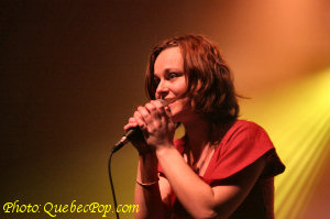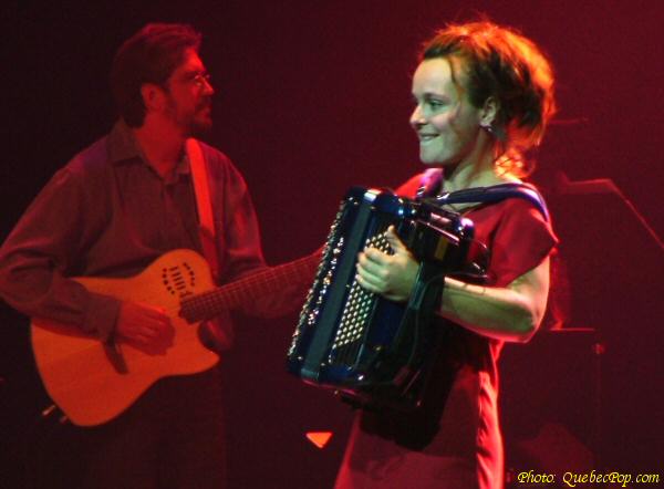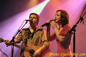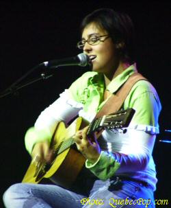 ![]() La grande gagnante, Pascale Delagnes en action. En arrière-plan, on note la présence d'Alain Leblanc, compositeur et guitariste de Jean-Pierre Ferland qui est aussi directeur musical du Festival de Granby |