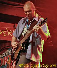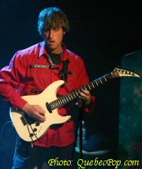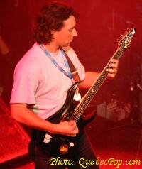 Aux Foufounes Électriques Mardi le 21 septembre 2004 Pour faire écho au "Drummer Kombat" qui mettait en vedette des as de la batterie, le réseau Énergie 94,3 et les Foufounes se sont alliés pour offrir un nouveau concours, celui des meilleurs guitaristes du Québec. Chaque mardi pendant 12 semaines, les gens auront l'occasion d'entendre 5 duels entre deux guitaristes. Au cours de ces duels, chaque participant doit démontrer ses capacités dans différents style musicaux et doit même participer à la prestation de son opposant lors de combats simultanés. Au sortir d'un 4 de 7, le gagnant est proclamé et les 5 lauréats de la soirée avancent vers les éliminatoires et la grande finale. L'animateur radio Ricky Dee préside aux destinées de la soirée et reçoit l'aide d'un panel de deux juges qui étaient, ce soir, Steve Hill et Rick (de chez Steve Musique). Entre le premier et le deuxième combat, Steve a fait une impressionnante démonstration de son savoir-faire, ce qui a placé la barre haute pour les participants qui devaient le suivre. Si vous aimez la guitare électrique, si vos oreilles peuvent en prendre, allez-y, c'est pour vous ! |