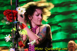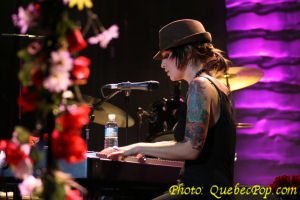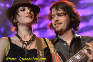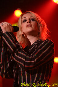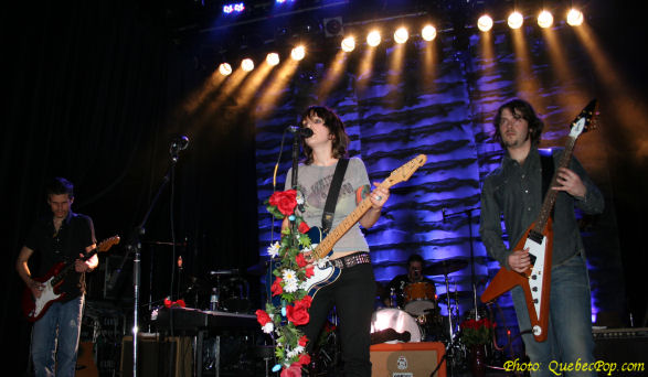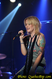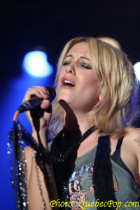 et c'est ce qui la rend le plus nerveuse. Elle promet de donner son maximum pour que le show soit mémorable pour eux. C'est ce qu'elle a fait en interprétant avec beaucoup d'énergie les pièces de son premier album intitulé Trashy Saloon et qui a été réalisé avec l'aide de nuls autre que Jean Leloup. Justement elle a emprunté quelques pièces du répertoire de son mentor parce qu'un seul album ce n'est pas beaucoup pour remplir un premier spectacle. Le deuxième élément qui frappe c'est comment elle est à l'aise dans le répertoire du "Wolf" comme s'il avait été composé pour elle. Ses propres chansons sont autant de bijoux, un élément que j'avais mentionné lors du lancement de son disque sur lequel chaque pièce vaut son pesant d'or et qui ne contient aucun temps mort. Pas pour rien que j'en ai fait mon album de l'année 2005. Ce soir, outre Leloup, elle nous a fait quelques autres covers que je n'ai pas tous retenus mais il y en avait un de David Bowie, à l'écoute de qui elle avait décidé de faire de la musique. Entouré d'excellents musiciens, Anik a aussi joué de la guitare (acoustique et électrique), du clavier électrique et de la batterie. Sur plusieurs pièces, deux batteries se faisaient entendre ce qui n'est quand même pas fréquent même dans le rock and roll. Somme toute, une soirée magnifique, beaucoup d'énergie et de charisme pour une jeune femme qui a toute une carrière devant elle. |