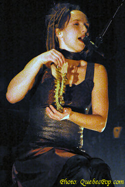 ![]() Avant de parler du spectacle principal, juste un petit mot sur celle qui va accompagner et faire la première partie de Jorane pendant cette tournée à travers le Québec. Elle s'appelle Sarah Slean et nous arrive du Canada anglais. Tout récemment, après une tournée en Europe et à travers le pays, elle lançait un nouvel album intitulé Day One. Dès le départ, la pièce Lucky me a beaucoup tourné à la radio, incluant à certains postes de Montréal comme CKOI. C'était donc bien agréable de la découvrir en chair et en os ce soir alors qu'elle nous a offert 6 ou 7 chansons dont Pilgrim, Mary (en l'honneur de sa grand mère) et Out in the park. Son style me fait penser à Tori Amos et parfois même à sa compatriote Sarah McLachlan. Elle est très ricaneuse sur scène et fait de gros efforts pour converser en français avec le public. Bref, une belle première partie qui m'a fait découvrir une nouvelle auteure, compositrice et interprète remplie de promesses. |
