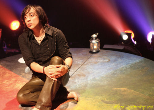 ciel.Côté chansons, Louphi nous a offert plusieurs pièces de son premier album intitulé Prophète en son pays, dont les Conquistador, Arsenal, Mayday, Grande amor, Ghetto, Le fou, Chacun sur son trapèze, A quatre pieds a ma droite, J'voudrais devenir et Prière. Pour chacune de ses pièces, Louphi n'a que le piano de Jean-Philippe Bouffard pour l'appuyer, mais puisque sa voix possède sa propre musicalité, il arrive à aller chercher une palette de couleurs insoupçonnée. Il n'est pas rare de lui voir une larme au coin de l'oeil tellement les textes lui parlent et il travaille très fort à en rendre toute les émotions. Côté nouvelles chansons, il puise dans le répertoire d'Eddy Marnay (Disparada, La croix l'étoile et le croissant), Jacques Brel (Mathilde) et Jacques Blanchet (Tête heureuse). Comme c'est une marque de commerce chez lui, Louphi se sert très bien de la scène, du décor et de son instrument de percussion privilégié, un large tambour amérindien pour véhiculer ses messages et créer une ambiance qui porte à la réflexion. Ce cette façon, il se permet d'ouvrir le coeur du public pour s'y insérer habilement. On sort de son spectacle avec des images plein la tête. J'ai aussi appris ce soir que Louphi vient de signer une entente avec les productions artistiques W.O.A. International, devenant ainsi le premier canadien à bénéficier de l'appui de cette entreprise qui gère la carrière de plusieurs artistes internationaux, en Inde surtout mais aussi partout à travers le monde. Cette entente permettra à Louphi de faire une tournée de 20 villes à travers l'Inde, en plus de voir sa chanson Chacun sur son trapèze figurer sur la compilation Goa Chillout Zone Vol 1 qui sortira en décembre. De bonnes nouvelles venues récompenser le travail des dix dernières années. |