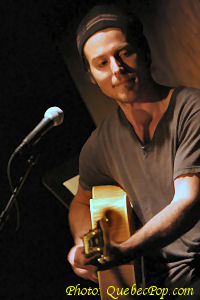 L'année dernière, il remportait le titre convoité de l'auteur compositeur interprète de l'année au concours Ma Première Place des Arts. Plus tôt cette année, il lançait un premier album intitulé Tabac et c'est ce soir qu'il commençait une série de trois spectacles sur les planches de la même scène qui l'a accueilli il y a maintenant 18 mois. En partant, Moran n'est pas du style à jouer le conventionnel, il annonce ses couleurs, ce sera un anti-spectacle, une occasion de rencontre entre l'artiste et les spectateurs, entre le créateur et l'amateur. Il dialogue avec le public, explique son cheminement et le fait que, pour lui, les chansons continuent de vivre après qu'elles soient gravées sur disque, au point que plusieurs des pièces de l'album Tabac présentées ce soir avaient déjà pris des tournures différentes du disque. L'une d'entre elles, fort prisée par ses fans, fût même présentée sous deux versions différentes ce soir, soit la chanson Caféine. Une seule interprétation s'est glissée dans le pacing de la soirée, C'est extra de Léo Ferré, une chanson qui a stimulé le jeune Moran et lui a donné le goût d'écrire des chansons. Un beau moment de plus dans une soirée fort agréable où la voix de Moran se superposait fort joliment à celle de sa belle, l'auteure compositrice Virginie Nault, qui lui servait de choriste ce soir. En fait, Virginie qui a aussi participé à la finale du concours Ma Première Place des Arts mais en 2006, a chanté au complet une de ses chansons, en plus de prêter l'une d'elles à JF pour sa propre interprétation. S'accompagnant à la guitare, Moran s'est aussi adjoint Christian Poirier, un autre guitariste qui joue aussi du lapsteel, histoire d'enrichir l'enrobage musical de ses excellents textes. Il sera de retour à la PDA vendredi et samedi de cette semaine, il mérite le détour ! |