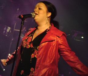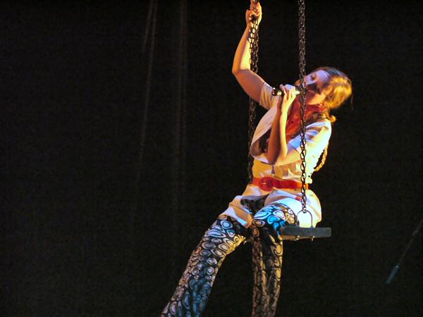 des textes du groupe, textes qu'elle rend de façon théâtrale, se basant