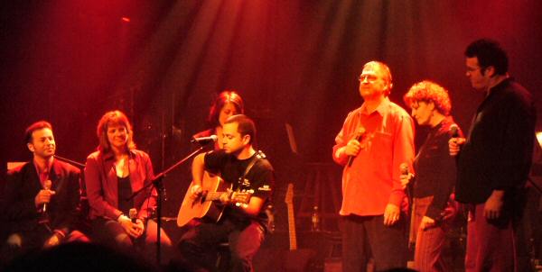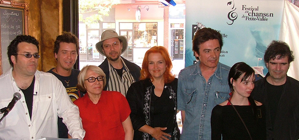![]() De gauche à droite, on reconnaît Alan Côté, Charles Dubé, Louise Forestier, Michel Rivard, Marie-Denise Pelletier, Daniel Lavoie, Viviane Audet et Pierre Flynn. |