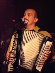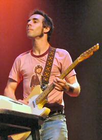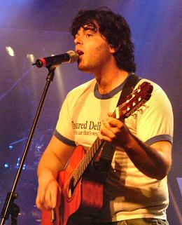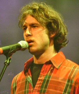 à travers sa musique et ses chansons. Parce que Mathieu nous offre justement un amalgame entre le folklore acadien, le rock et les musiques du monde, majoritairement teinté de rythmes africains. C'est encore plus évident quand on le voit en spectacle, accompagné à la fois d'un percussionniste et d'un batteur. L'enveloppe musicale qu'il crée pour ses chansons est synonyme de grands espaces et de quête intérieure. Il a pris un petit congé des célébrations du 400 ème anniversaire de l'Acadie pour venir donner un spectacle à Petite Vallée et participer à l'hommage donné à Daniel Lavoie, le parrain du festival 2004. |