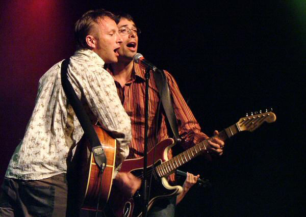 après-midi au Théâtre de la Vieille Forge.D'entrée de jeu, on note une superbe complicité avec ses musiciens, guitariste et violoniste, dont je n'ai malheureusement pas réussi à saisir les noms. Ils lui servent de faire-valoir musicaux et jouent très bien la comédie. Parce que justement, un spectacle de Thierry Romanens, c'est une visite dans l'univers rocambolesque de l'artiste. Touchant et touché, allumeur et allumé, il présente chaque chanson dans un contexte majoritairement humoristique, quelquefois sérieux, mais toujours avec une profondeur qui fait réfléchir. Il se fait le porte douleur (il parle beaucoup de lui-même) des aléas des relations hommes-femmes et ses textes font mouche à tout coup. Ses musiques servent naturellement de support à sa prose, mais il en profite tout de même pour utiliser les capacités techniques de ses musiciens et leur laisse assez d'espace pour qu'on réalise la portée de leur talent lors de quelques solos pas piqués des vers. On peut dire sans se tromper que Thierry Romanens saura combler tout public qui ouvrira les oreilles à son oeuvre, un beau coup de coeur pour Petite Vallée. |