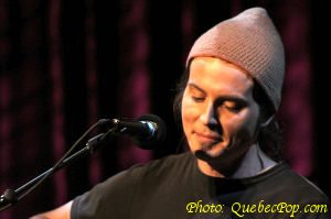 Lundi le 24 janvier 2005Troisième soirée du premier bloc C'est toujours avec Charles Dubé à l'animation que le concours poursuit sa route en ce lundi un peu froid, du moins à l'extérieur de la Place des Arts, parce que dans la salle du Studio Théâtre, c'en était tout autrement. Nous avons eu droit aux prestations de deux talentueux auteurs compositeurs interprètes, soit Guillaume Castonguay et Philippe René, ainsi qu'à celle de la jolie Cindy Marcil en tant qu'interprète. Comme nous y avons maintenant été habitués, les performances étaient tout à fait à la hauteur Originaire de Rivière-Bleue, Guillaume s'était déjà fait remarqué lors du Tremplin de la chanson de Dégelis, alors que c'était semble-t-il une première pour les deux autres dans un concours de ce genre. Vous pourrez voir un extrait du spectacle de chacun au canal Vox dès mercredi prochain, 21h. |