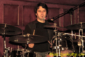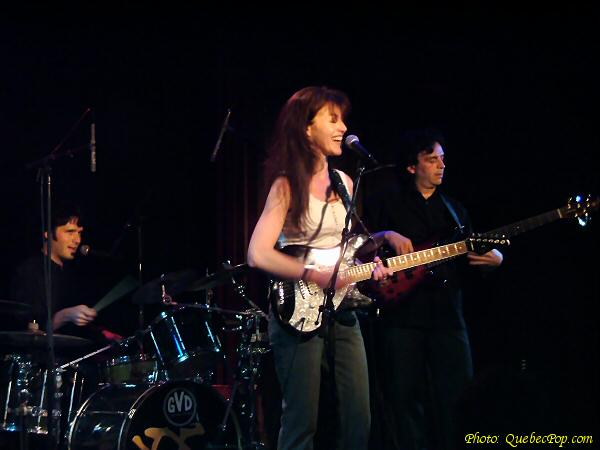 ![]() Avec ses musiciens, Sébastien Dubois (batterie), Marc-André Dubé (basse) et Christian Poirier (guitares) |