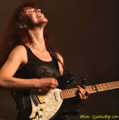 ![]() C'est accompagnée de son fidèle bassiste Marc-André Dubé qu'elle se présente sur scène devant un public qui ne la connaît que trop peu mais qu'elle gagnera à mesure qu'avancera sa prestation. C'est dans le rock and blues que Claire a débuté sa carrière et produit ses trois premiers albums, mais l'acquisition d'un piano Fender Rhodes de l'ancien claviériste du groupe Sloche a donné une nouvelle dimension dite progressive au matériel de son quatrième album intitulé CyberNeptune. C'est tout de même une sélection de tous ses albums que Claire nous a offert ce soir, de Coeur Sauvage à Meluzine en passant par De l'ouest... une brise souffle et Camée Léone. Une présence qui se fait trop rare à Montréal mais qui fait du bien et que l'on prend avec plaisir quand elle se présente ! |