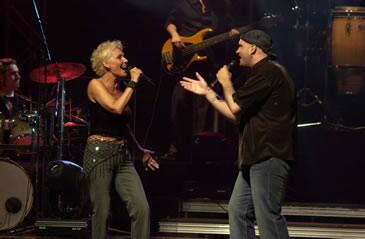 ReportageChantal Pary et Carl Williams Deux voix, une scène au St-Denis Samedi le 4 septembre Devant une salle comblée, Chantal et Carl ont repris où ils avaient laissé au même endroit le printemps dernier, un spectacle qui avait donné naissance à un album LIVE sorti au début de l'été 2004. Le couple est toujours aussi épris l'un de l'autre, ils passent la soirée à le démontrer, que ce soit par leurs chansons (seules ou en duo), dans leurs petits gestes, leurs présentations, leur interactions avec le public. Leur bonheur est communicatif, la foule embarque dans chacune de leurs chansons, que ce soit la magnifique Les portes du pénitencier, l'hommage à Mike Brandt de Carl ou le solide pot-pourri des meilleures chansons de Chantal, un bouquet d'amour qui dure plus de vingt minutes. Ils fêtaient ce soir leur 250 ème spectacle ensemble, ce n'est pas peu dire. Ils étaient entourés de cinq musiciens et deux choristes dont la fille de Chantal, Mélanie qui fait aussi carrière sous le nom de Mélanie Treize. Dans la salle, des amateurs et amis de longue date comme les Dennis Pantis, Guy Harvey (Les Gendarmes), Jen Roger et plusieurs autres, qui sont venus démontrer leur attachement à Chantal et Carl. Ce fût un beau moment à partager avec eux. Pour ceux qui n'ont pas eu l'occasion de vérifier par eux-mêmes que Chantal possède encore la voix de ses vingt ans et que Carl tient très bien son bout, vous avez la possibilité de les entendre sur disque puisque la captation du spectacle est en vente au peu partout. Le spectacle, comme le disque, fait un peu le bilan de leur carrière et de leurs grands succès tout en laissant une large place à des classiques de la musique contemporaine comme Le pénitencier, Chariot, Avec la tête avec le coeur, Les enchaînés, Eloïse, Over the Rainbow et Bambino. Difficile de croire que la carrière de Chantal a touché 5 décennies déjà, de la fin des années 60 au début des années 2000. C'est très certainement un hommage à son talent, à sa voix qui ne semble pas avoir vieilli d'un iota et son plaisir renouvelé de se trouver sur une scène devant un public qui continue d'apprécier ses chansons. Outre les chansons mentionnées plus tôt, notons un medley de chansons Gospel, un style dans lequel Chantal à fait carrière pendant quelques années, ainsi qu'un pot-pourri de chansons de films telles The time of my life, You're the one that I want et I will always love you. Les photos qui accompagnent ce reportage ont été empruntées au site officiel du couple. Vous pouvez y retrouver plein d'informations sur la carrière du couple, ensemble ou séparé. |