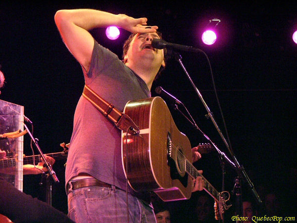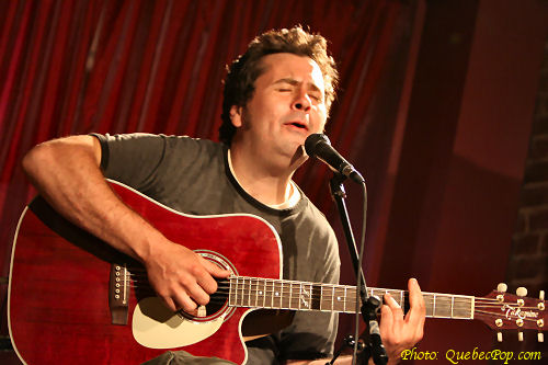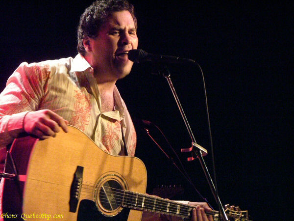 lui qui est natif de la région de Lanaudière.En plus d'Isabelle chanson qu'il a faite avec l'aide de Boom Desjardins, il a repris des chansons qu'il avait passées à d'autres, A tous les dimanches (La Chicane) et Mon chien est mort (Martin Deschamps). Au delà de ces covers de lui-même finalement, il nous a fait plaisir avec les chansons de son premier album, Toé et son magnifique violoncelle, Qu'est-ce que la mondialisation, un anti-hommage à W Bush, Passe par chez nous, Tout est normal, Le monde a tout vu d'in vues, etc. Lui-même à la guitare, Richard était entouré de 5 musiciens sur la petite scène du Studio Théâtre, soit Sophie Desrosiers au violoncelle, Steve Cournoyer à la batterie et aux percussions, Hugo Labelle à la basse, Serge Fortin à la guitare et Jean-Fred Lizotte au violon. Richard Pelland, un être authentique et un artiste qu'il fait bon connaître ! |