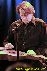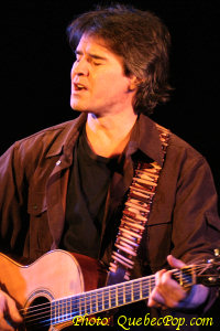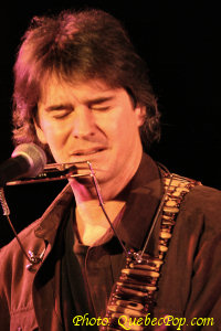 Bien appuyé par le guitariste Pierre Lavoie qui joue aussi du dobro et y va de quelques choeurs, Mario enfile sa propre guitare, armé aussi de son harmonica, et offre un spectacle en deux parties bien distinctes. Dans un premier temps, il revisite des pièces qui ont marqué ses quatre premiers albums, incluant une chanson qu'il n'a pas endisqué lui-même, soit J'ai mal à l'amour, popularisée par Isabelle Boulay. Il a aussi la chanson primée du concours de 1997, soit Je t'appelle (texte de Sophie Boissonneault) dont il avait écrit la musique. En deuxième partie, c'est le plus récent album qui prend le haut du pavé avec ses chansons intimistes et toujours autant empreintes de sensibilité envers les gens et les choses. L'artiste originaire du Témiscamingue, issu de grands parents italiens et amérindiens, trouve dans le country folk un véhicule parfait pour enrober ses parcelles de vie teintées de grand air et de liberté. La mise en scène a été confiée à Mouffe qui n'en est pas à ses premières armes et elle a imaginé un décor de chandelles crée une ambiance de boite à chanson ou d'un vieux chalet à la campagne. Un bon spectacle, intimiste et sympathique, avec de fort bonnes guitares et des textes bien imagés en musique. On en prendrait n'importe quand ! |