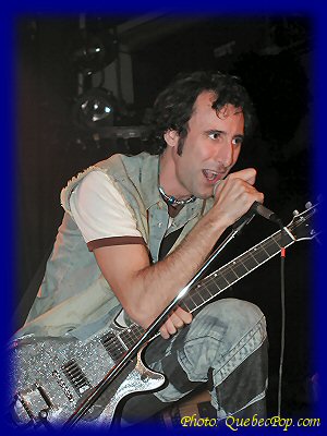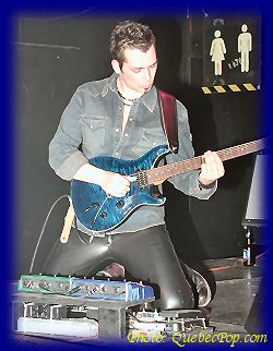 qui amenaient une touche féminine au groupe. Richard, lui même à la guitare, nous a offert quelques tounes de son premier album, dont "Printemps" et plusieurs du deuxième, "Deuxième étage", "Little girl", "Niaiseux", "Des bêtises", et plusieurs autres. La musique de Richard, déjà très entraînante sur disque, prend une dimension très festive lorsque sur scène. Il communique bien avec le public, présente quelques pièces comme "Little girl", dédiée à cette jeune fille de 5 ième année qui faisait office de vilan petit canard avec ses broches et son accent à la française, et qui est aujourd'hui devenue mannequin dans un agence de mode.Richard vaut la peine qu'on le découvre sur scène, s'il passe par chez vous, allez-y voir ! |