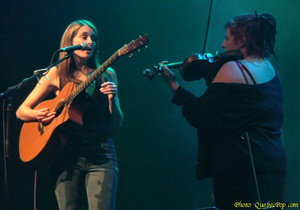 spectacle officiel en terre montréalaise... et quel spectacle ! Entourées d'excellents musiciens (guitare électrique, basse et batterie), leur musique se fait plus rock, progressive par moments et ça devient sublime quand Rachel utilise son violon électronique. Parmi les chansons de leurs trois albums, j'ai reconnu Roger, Devant chez moi, Last Call, On n'oublie rien, J'ose croire et plusieurs autres. Lors du rappel, Anique nous a fait une version tout à fait débridée de la chanson Trois p'tits chats que lui réclamait la foule. Rappelons qu'en 2002, elles ont reçu le Prix Étoile – Coup de cœur francophone décerné par Galaxie, le réseau de musique continue de Radio-Canada, alors qu’en 2003, elles raflaient le prix du Meilleur album francophone de l'année aux Western Canadian Music Awards. Des prix amplement mérités pour une formation qui pousse plus loin les frontières du folk rock contemporain. Bravo ! |